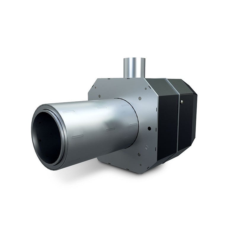 Продукты сгорания удаляются из топки автоматически при помощи подвижной, ротационной камеры сгорания, а также многоступенчатой подачи воздуха, благодаря чему горелка сама очищается от пепла и кокса.