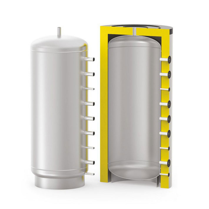 Буферные емкости данного типа позволяют подключать дополнительные источники тепла и производить разделение тепловых носителей.