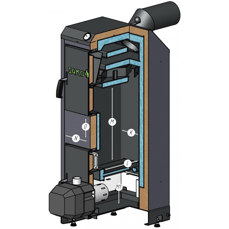 • отдельной автоматической камерой сгорания, выложенной огнеупорным шамотом, что продлевает срок жизни котла и способствует полному догоранию топлива;