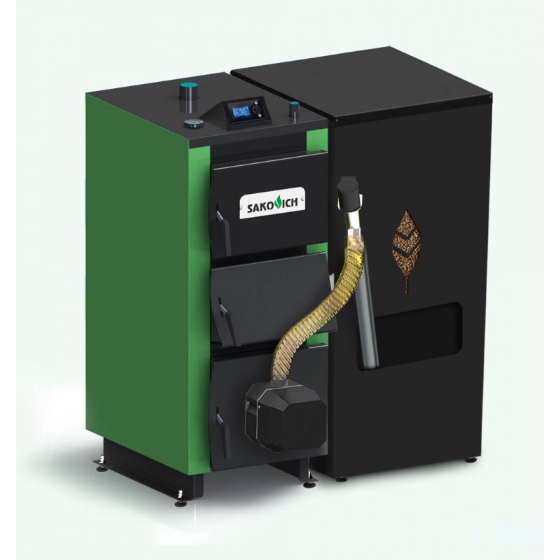 Котел DUO PELLET - это универсальный автоматический котел работающий как на пеллете любого качества и агро-пеллете (например, пеллета из рапсовой соломы или шелухи подсолнечника) размером 6-8 мм в полностью автоматическом режиме, так и с периодической загрузкой кускового топлива дров, угля-разных сортов, отходов деревообработки, брикета и торфа на дополнительной водонаполненной колосниковой решётке.