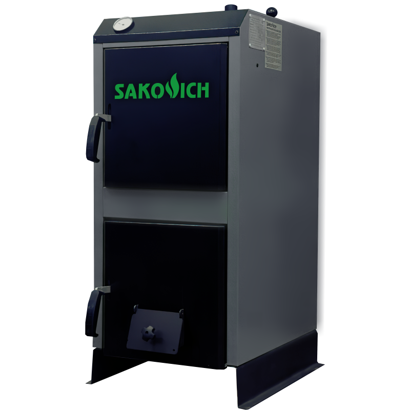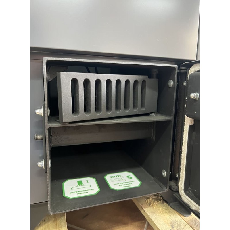Котёл оснащён водонаполненным колосником и ручной регулировкой тяги.