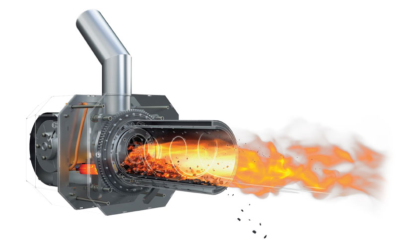 Смешивание с воздухом – в топку горелки постоянно, правильно подаётся воздух, благодаря чему мы можем поддерживать постоянное горение на должном уровне. Это обеспечивает высокий КПД и экономичную работу горелки. Эта фаза аналогична процессу смешивания топлива и воздуха в двигателе автомобиля. В пеллетных горелках воздух подается вентилятором, скорость вращения которого точно регулируется. Правильные пропорции пеллет и воздуха имеют решающее значение для эффективного сгорания. Слишком мало воздуха приводит к увеличению выбросов, что в крайних случаях может привести к возврату пламени в горелку. Слишком много воздуха выдувает несгоревшие пеллеты, снижая эффективность горелки.